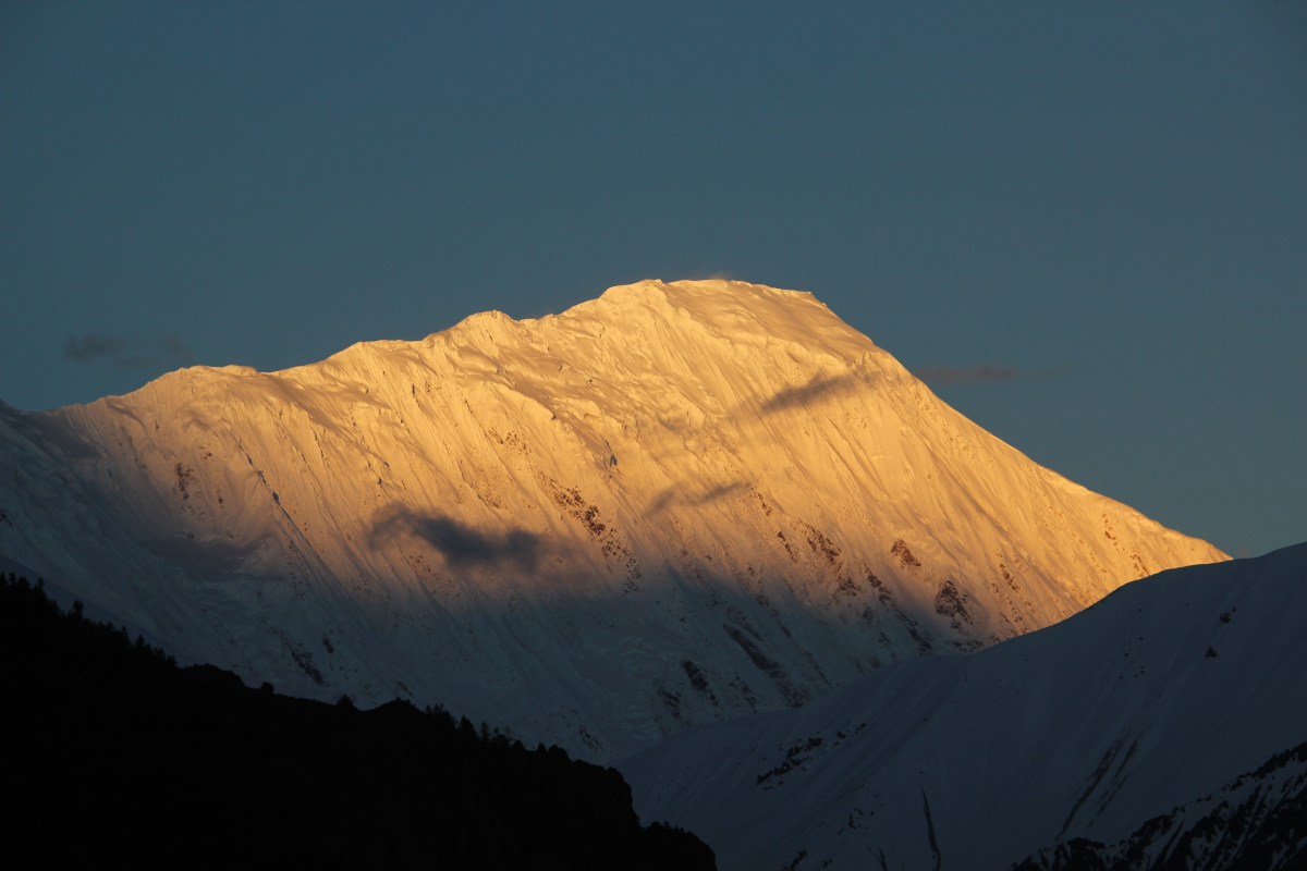 It seemed out of the world. The Tilicho peak, in particular, was bathed in gold. Others had touches of black because of exposed rock surfaces, but Mt Tilicho was covered with snow and the solar rays had a free run along its slopes to paint it in the way they wanted.