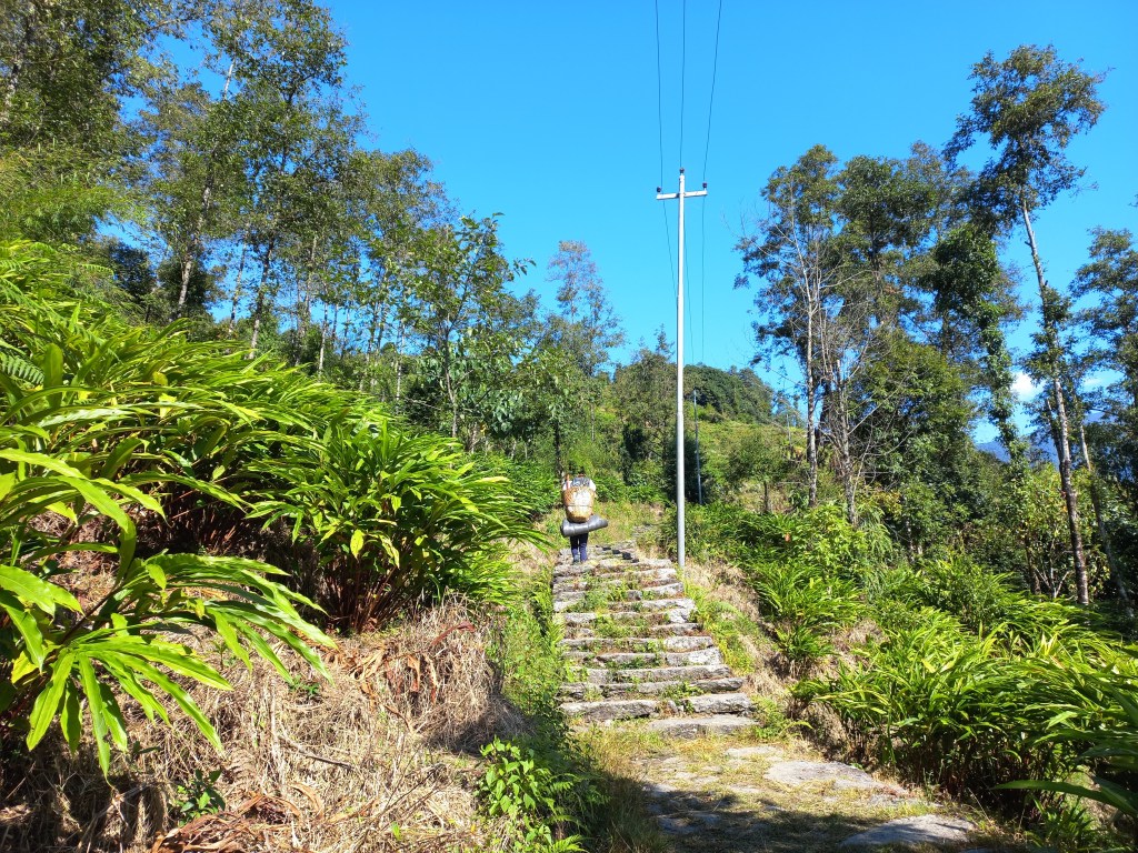 Going by the plan, we would return here after another 10 days. We started hiking up the stairs amid bright sunshine, a clear sky & sweeping greenery. Seduwa is a relatively large village. While moving up the slopes through the alleys amid the terraced fields, we watched the village life. People were gradually getting on with their daily routine. The bright green crop of millet had a hue of yellow.
