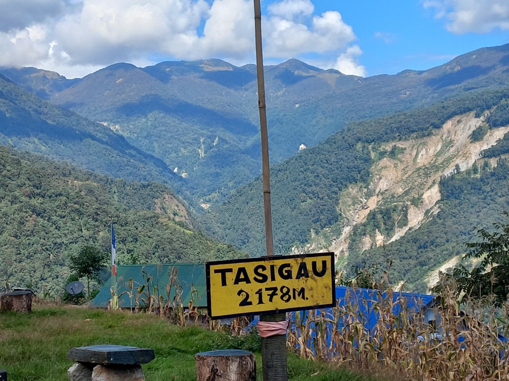 After walking for some more time, we took a short detour through a village and regained the main track. We waited beside a house for our porters to catch-up with us. After that point the track moved up a little and the homes of Tashigaon started appearing.