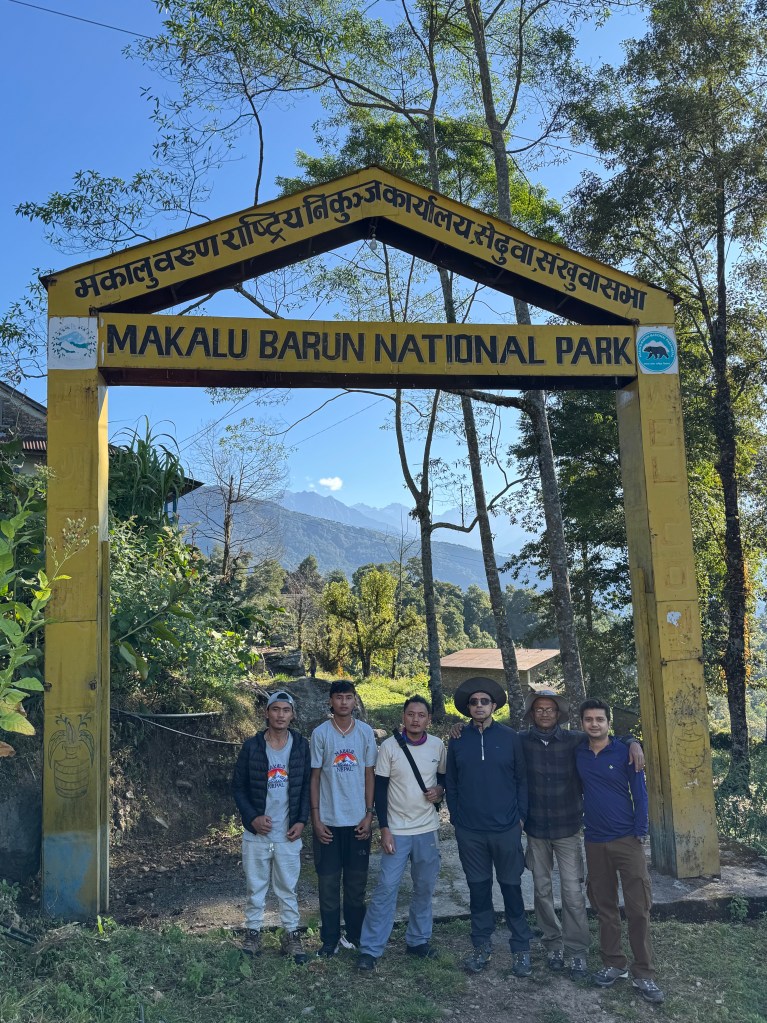 Food options at the lodge weren’t great. We ate noodles at dinner last night. They were thick. We had challenges to gulp them down our throats. Breakfast was somewhat better. Yet, Seduwa offered the last chance to charge my camera batteries. The next available choice was at Phemathang, which we reached much later, that too, unplanned. But that’s a story to be told later. After Raju settled the bills, we assembled in front of the lodge for a group photograph along with Anil, Manoj & Raju with all our trekking gears. Another was taken at the entrance gate of the Makalu Barun National park.
