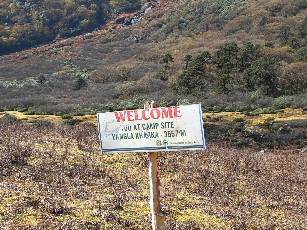 Given that we were in the valley, the route moved through the forests. This was at contrast to the trail yesterday which was above the tree line, over the passes. As we moved along, the Barun river kept company. The depth between the trail and the flowing river kept decreasing and after sometime Barun was flowing by our side. The valley started to open up. The Barun river now appeared to flow along flat ground, distributed in multiple small and large streams. Just then, at the corner of a bend, a writing on a wooden board declared “Yangle Kharka”.