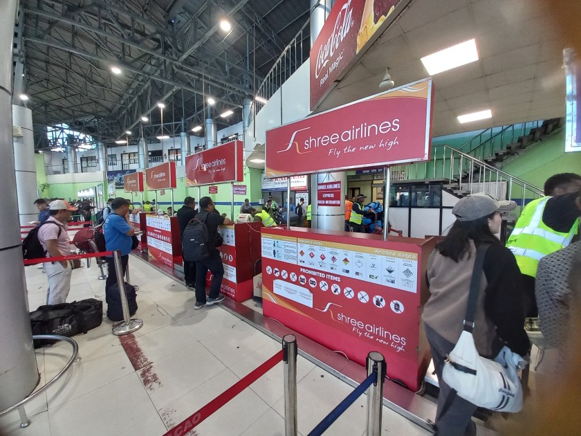 The lodge was on the right with a set of rooms. One of the rooms advertised the facility of a hot shower, the first of it’s kind on this trail. Shivadhara is a sacred waterfall in this region. The legend says that Lord Shiva created this waterfall with a stroke of his trishul. It falls from a height of about 500 m from a hole in a cave. The route towards it diverts from a place beyond Yangle and that trail is challenging. There’s a section where one has to step over wooden planks fixed on a vertical wall. I’ve watched videos about it and kept it out of our syllabus. It also required more days. We saw many local groups heading for that place. It’s considered a sacred pilgrimage in this part of Nepal.