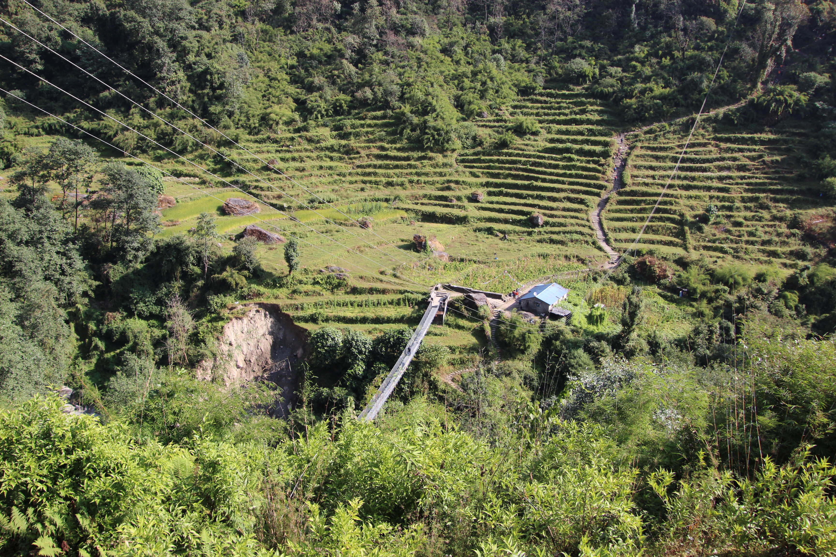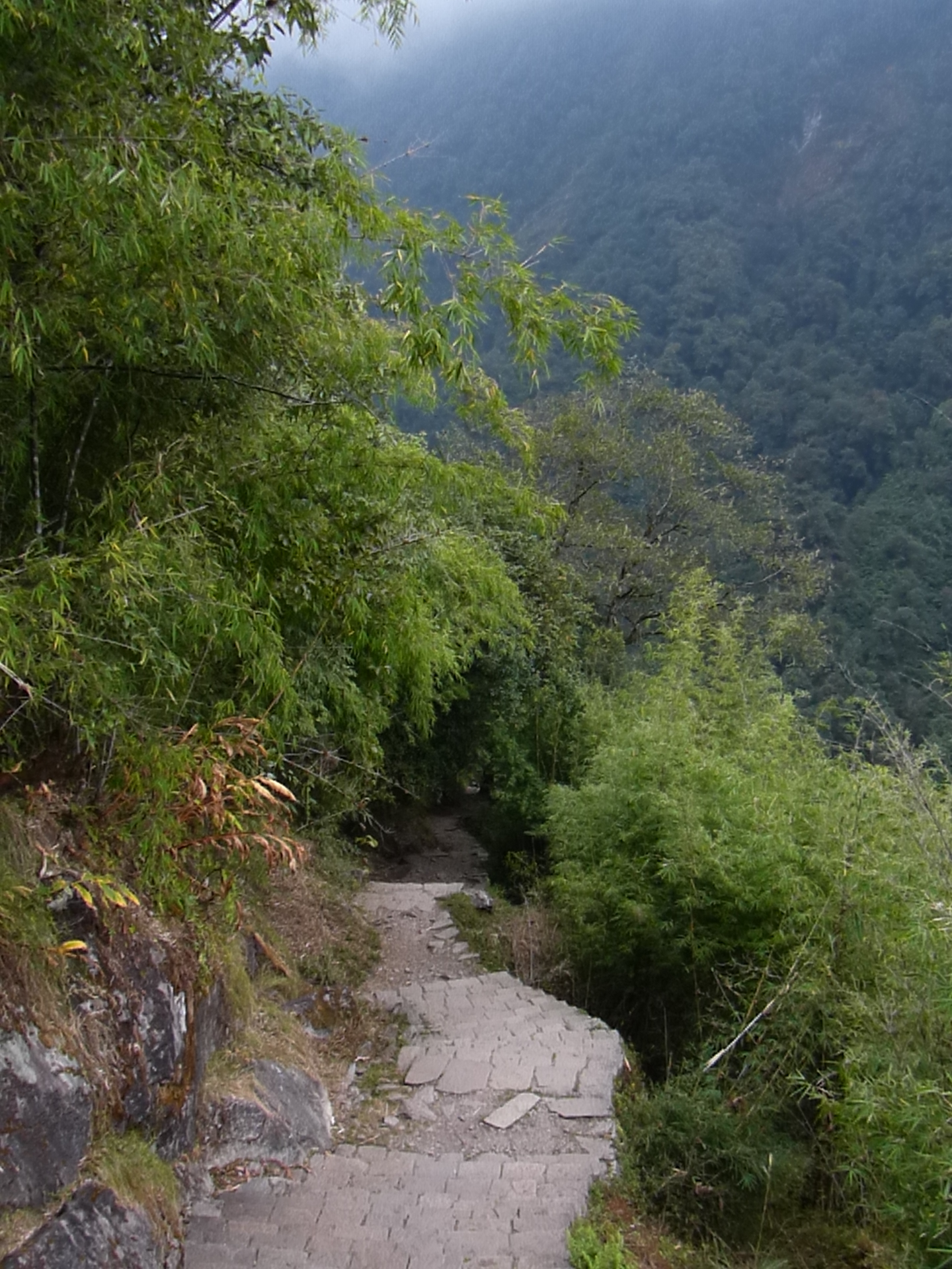 Villages were nestled amidst the high slopes of the mountains. Houses were surrounded by terraced fields. Villagers were at work in the fields. Some kids passed by on their way to local school. We carried lozenges with us and were generous about distributing them to the kids whom we met on our way.