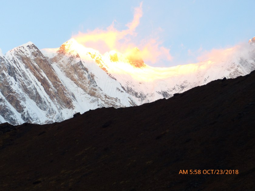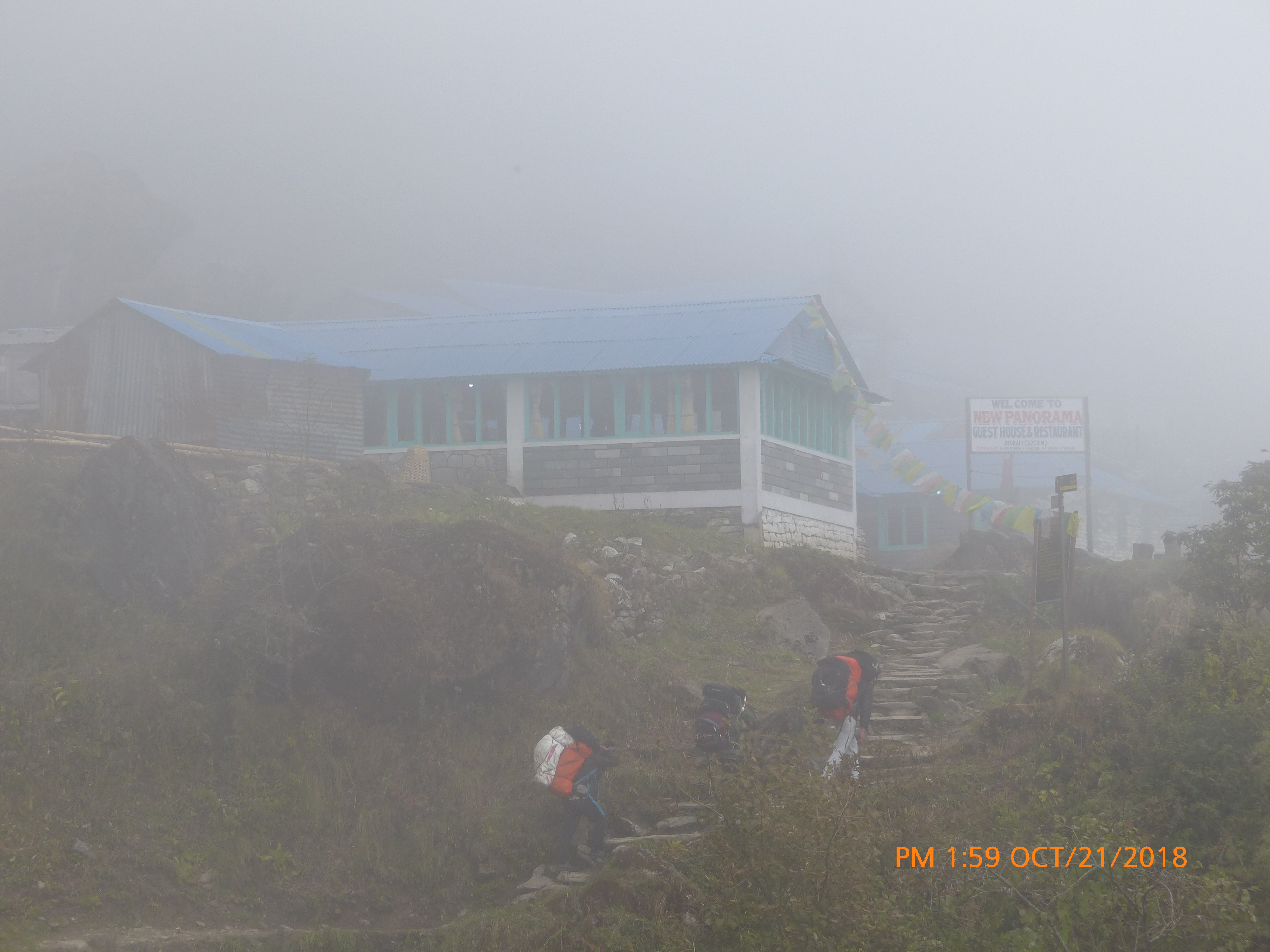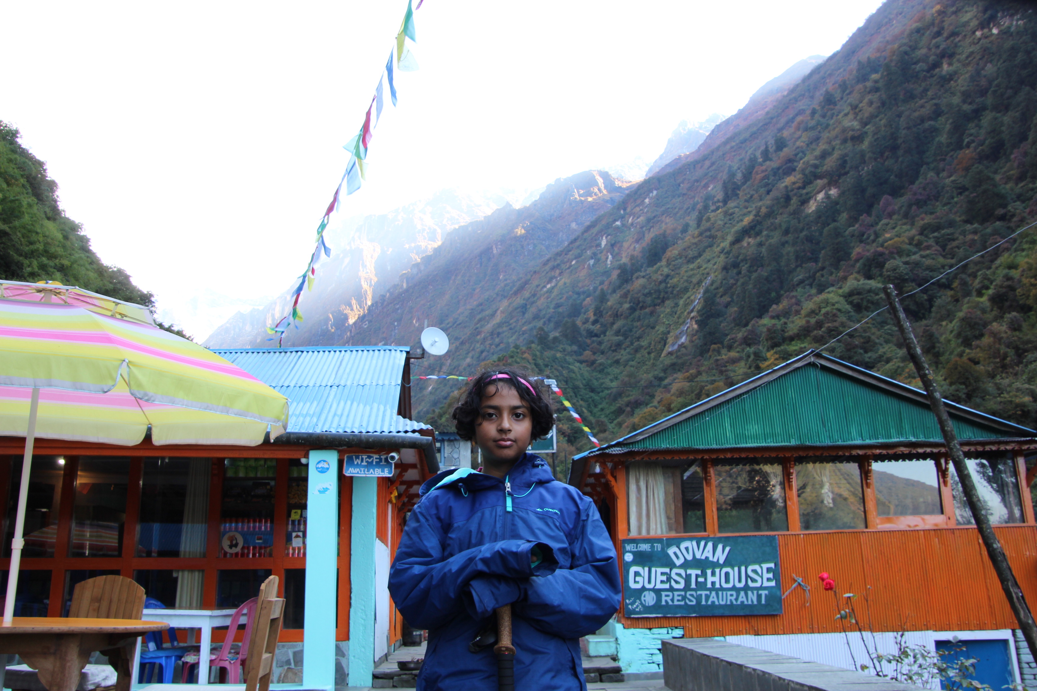 We headed to our tea house. A single four-bedded room was allocated to us. Our bags reached there before. After changing to homewears, we sat on the beds with our usual tea and snacks session. Conversations involved our experience during the day, the new walkway, some friendly banters, leg pulling and the plan for the morrow, which would take us to the next destination Deng. The tea house had WiFi available and we called our respective homes to inform about our safe journey and health. A sense of relief, completion and satisfaction prevailed. After dinner, we went under the blankets. We were sleeping at 1370 m.