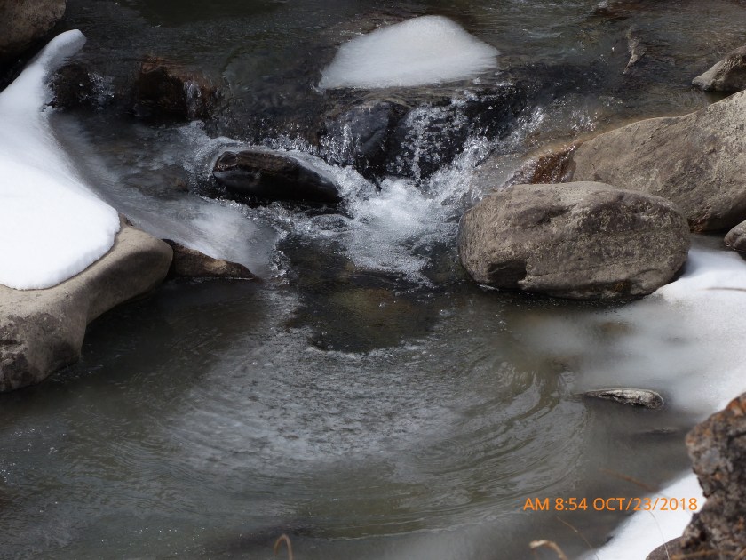 Waterfalls kept coming down the slopes. Some even crossed our ways. We had to be careful while crossing them. Though the torrents were not fast, but they were deep and we had to cross them by placing our feet over the precariously placed rocks that dotted the streams.
